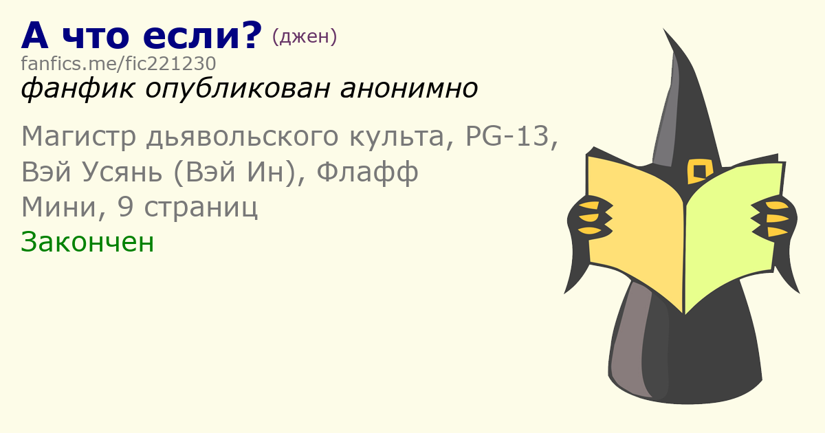 | Ох, зазноба моя Лань чжань и на Фанфиксе нашел. Когда-то я ими болела, но недолго. Милое хэ, спасибо вам) | |